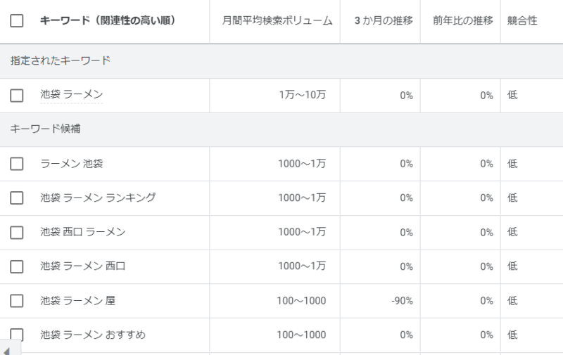 池袋駅に勤め先があるのであれば、池袋周辺の何かと広告が結びつかないか?と考える。食べることが好きならばグルメサイト&池袋というキーワードを思いつく。キーワードプランナー