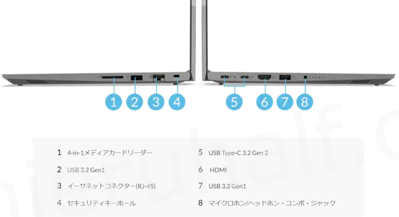 ThinkBook 15 Gen 3のスピーカーは音質があまりいいとは言えません。コード接続(⑧)すると圧倒的に音質が変わります。